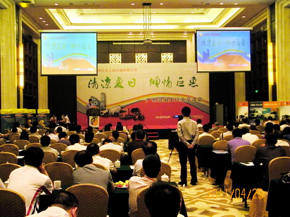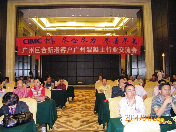 2011年4月23日下午,廣州巨合工程機(jī)械有限公司在廣州市天河區(qū)嘉逸皇冠酒店舉行“清涼夏日、傾情巨惠——廣州混凝土行業(yè)交流會(huì)”。會(huì)上,中集專用車有限公司、集瑞聯(lián)合卡車銷售服務(wù)公司、常林股份有限公司展示了最新的混凝土攪拌運(yùn)輸車、輪輪式裝載機(jī)等混凝土專業(yè)車輛和機(jī)械,近200名巨合的新老客戶參加了這次盛會(huì)。