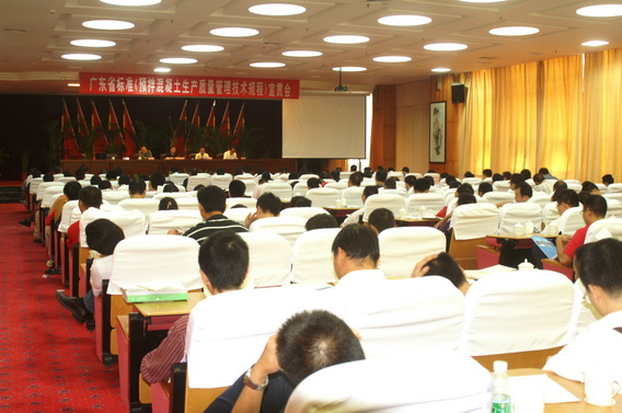 10、 2010年10月20日,我省混凝土行業(yè)首部地方標(biāo)準(zhǔn)《預(yù)拌混凝土生產(chǎn)質(zhì)量管理技術(shù)規(guī)程》宣貫會在廣州武警天鹿湖會議中心舉行,來自全省各市行業(yè)協(xié)會的領(lǐng)導(dǎo),業(yè)界企業(yè)家、專家、工程技術(shù)人員約200人出席了會議。由廣東省預(yù)拌混凝土行業(yè)協(xié)會組織編寫,省住建廳粵建 [2010] 39號公告批準(zhǔn)正式頒布,自2011年1月1日起正式實(shí)施的我省預(yù)拌混凝土行業(yè)的第一部地方性標(biāo)準(zhǔn)。《規(guī)程》的制訂凝聚了全省行業(yè)工程技術(shù)人員和管理人員智慧和勞動的結(jié)晶,它的頒布與實(shí)施,對規(guī)范我省混凝土行業(yè)企業(yè)管理行為,健全行業(yè)質(zhì)量管理體系,提高和穩(wěn)定我省預(yù)拌混凝土生產(chǎn)的質(zhì)量,推進(jìn)行業(yè)標(biāo)準(zhǔn)化建設(shè),促進(jìn)行業(yè)健康協(xié)調(diào)發(fā)展具有重要的現(xiàn)實(shí)意義和深遠(yuǎn)的歷史意義。