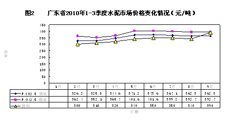 今年前三季度廣東省水泥工業,得益于固定資產投資的快速增長、房地產投資繼續回升、亞運工程加快進度、淘汰落后水泥產能力度的加大,廣東水泥市場呈現風調雨順,淡季不淡,價量齊增的良好態勢。根據中國建材數量經濟監理學會的統計資料顯示: