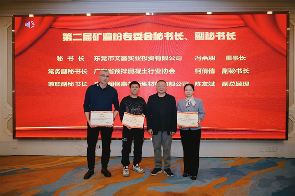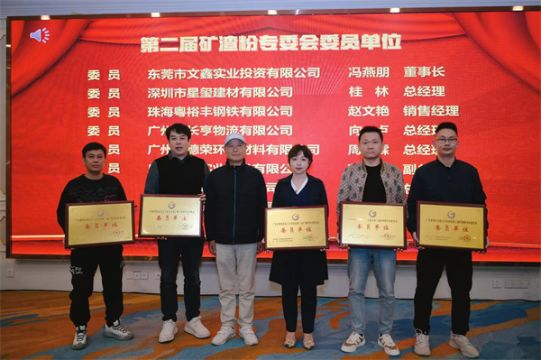 最后,會(huì)議進(jìn)入第三部分——礦渣粉專(zhuān)委會(huì)授牌儀式環(huán)節(jié)。鄺文輝會(huì)長(zhǎng)為第二屆礦渣粉專(zhuān)委會(huì)主任委員和副主任委員授牌,接著由許小安監(jiān)事長(zhǎng)為委員單位授牌,最后由李黎常務(wù)副會(huì)長(zhǎng)兼秘書(shū)長(zhǎng)為專(zhuān)委會(huì)秘書(shū)長(zhǎng)馮燕朋、常務(wù)副秘書(shū)長(zhǎng)柯倩倩、兼職副秘書(shū)長(zhǎng)趙文斌頒發(fā)聘書(shū)。